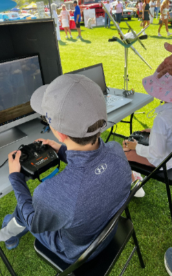 On Saturday, February 14, 2026, the CVRC Club had a 30′ x 10′ space at the 23rd Annual Dr. George Charity Car Show at the Indian Wells Tennis Garden. We displayed several RC planes, two RealFlight flight simulators, rack cards, and lots of swag from NASA, courtesy of Dan’s son, Brandon. There was a lot of interest in the planes and the free pilot training program, which will hopefully draw new member interest. Every 15 minutes Dan would fire up his turbine jet – That always drew a big crowd!! (The military service dogs in the adjacent space were not huge fans!)
